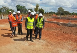 DC HOMERA Amedhishwa na mwenendo wa ujenzi wa ghala la kuhifadhia Korosho linalojengwa na serikali kwa udhamini wa Bodi ya Korosho Tanzania (CBT) kwa shilingi Bilioni 5.7