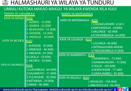 UMBALI WA KUTOKA MAKAO MAKUU YA HALMASHAURI TUNDURU KWENDA VIJIJI VYOTE PAKUA HAYO MAANDISHI YA BLUU KUONA UMBALIKUTOKA HQ - VILLAGES